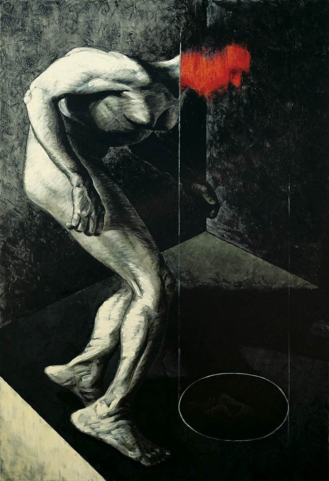 pierre noire et acrylique sur toile, 100 x 150 cm
